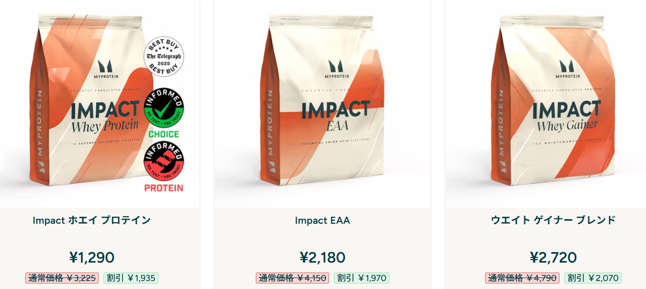 • 目標に合わせた商品選び:ダイエット向けの「インパクトホエイアイソレート」や、バルクアップ向けの「ウェイトゲイナー」など、目的に合わせた最適な選択が可能です。