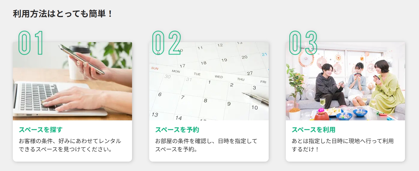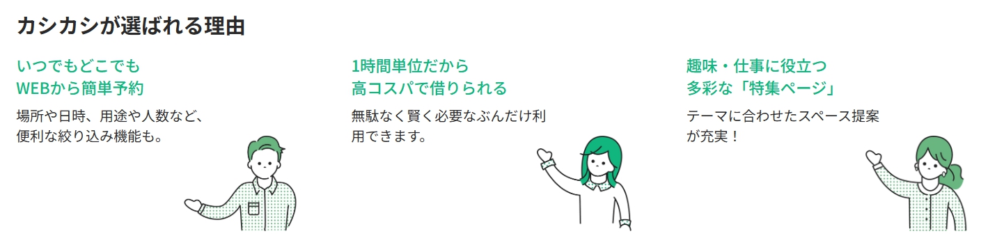 カシカシは、空いている空間を有効活用したいオーナーと、場所を借りたいユーザーをつなぐプラットフォームです。その主な特徴は以下の3点に集約されます。