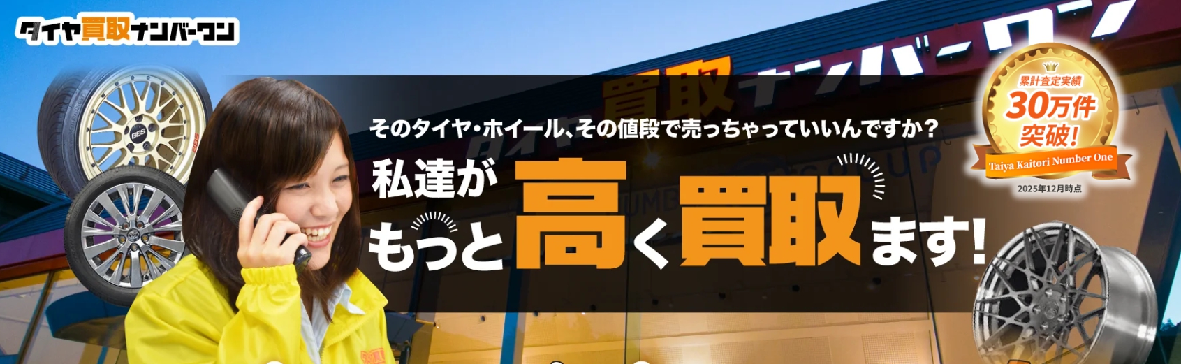 「新しいタイヤに買い替えたけれど、古いタイヤの処分に困っている」「車庫に眠っている純正ホイールを高く売りたい」そんな悩みをお持ちの方におすすめなのが、タイヤ・ホイール買取専門サービスのタイヤ買取ナンバーワンです。