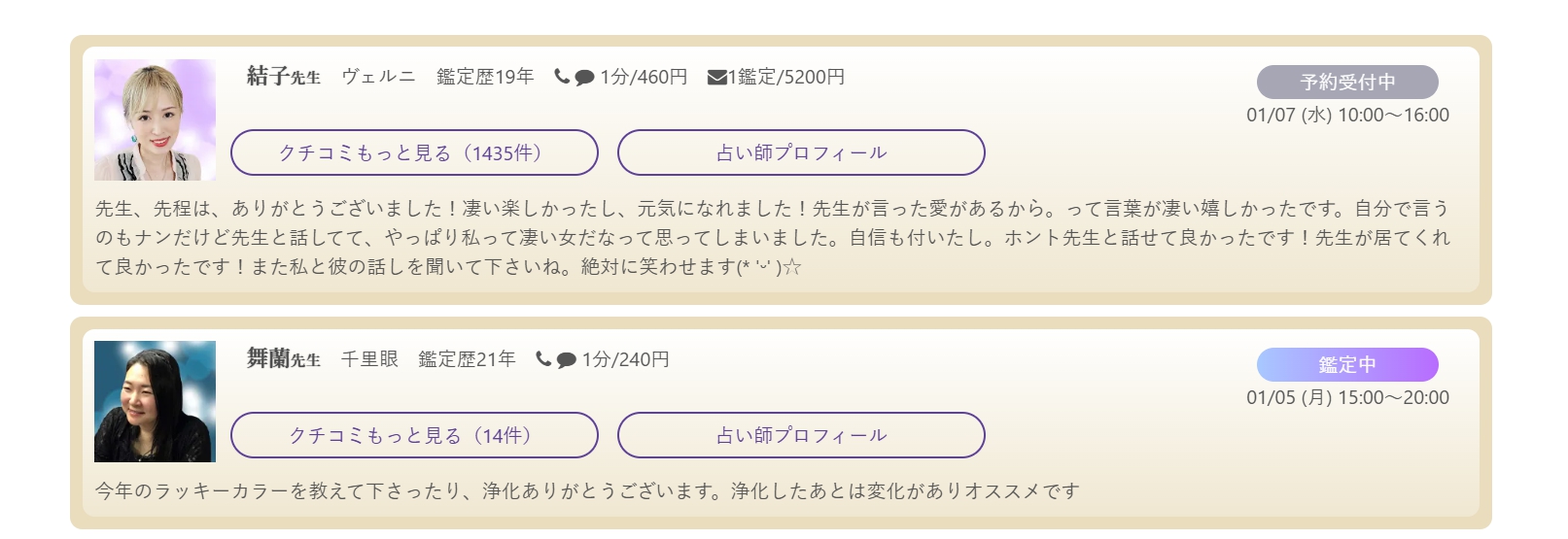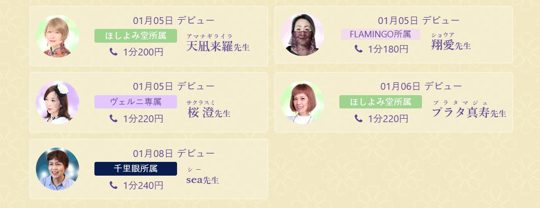 - 自分に合った占い師が必ず見つかる:透視、霊感、タロット、四柱推命など、多彩な占術を持つ占い師が揃っているため、自分の好みに合わせた鑑定スタイルを選べます。