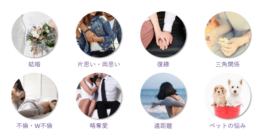 | 複雑な恋愛・復縁 | 相手の気持ちや今後の流れを霊感・透視などで詳しく読み取ります。 |