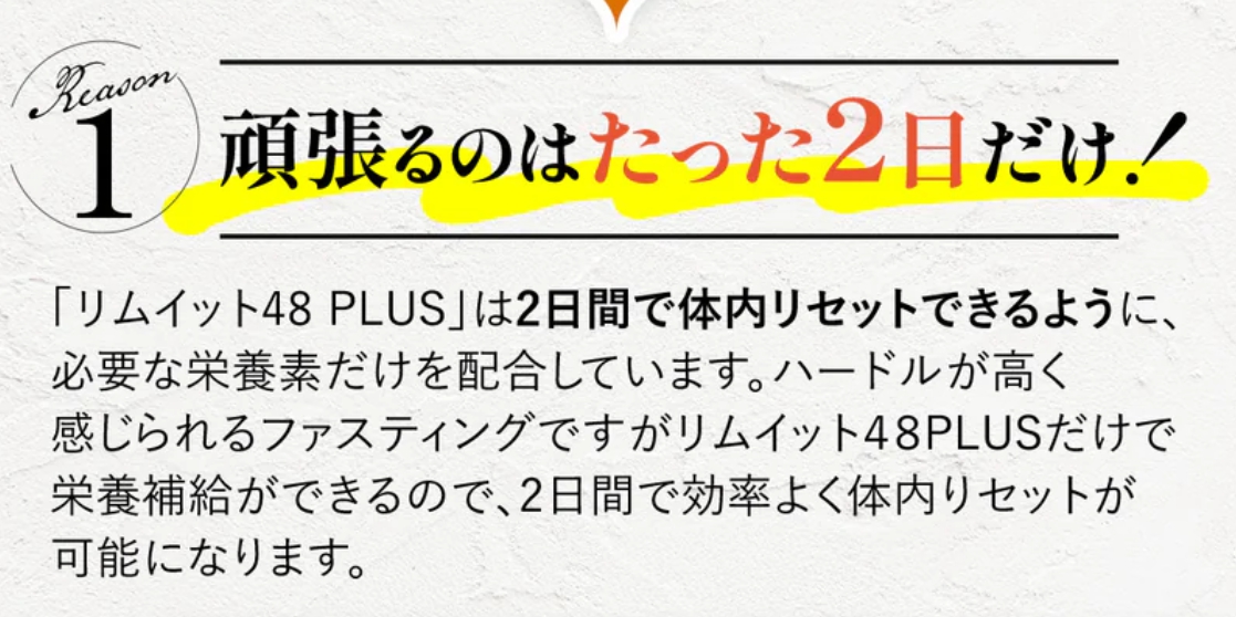 - 48時間というゴールが明確:数週間続くダイエットとは違い、2日間という短期間に集中するため、モチベーションを維持しやすくなります。