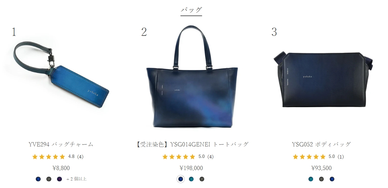 yuhakuには、表現したい色彩や使用する革の種類によって複数のシリーズがあります。