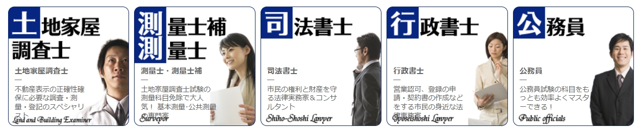 | 土地家屋調査士 | 学院が最も得意とする分野です。合格者の占有率が高く、最高峰の対策が受けられます。 |