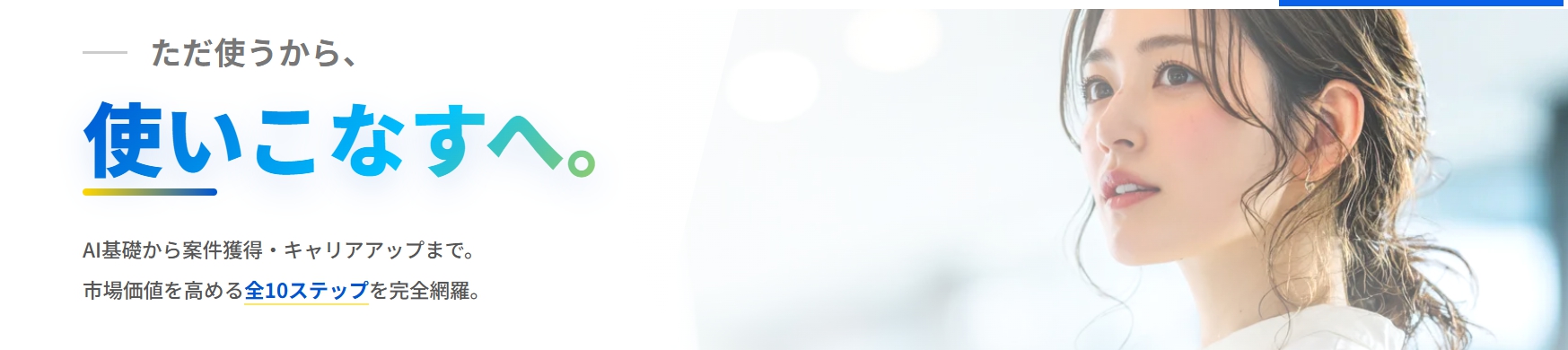 AIの歴史や理論を学ぶ時間は最小限に抑えられています。その代わり、ChatGPTを使ったライティング、画像生成AIを活用したデザイン制作、AIエージェントによる業務自動化など、実際に「これでお金が稼げる」というスキルの習得に特化しています。受講期間中に最初の案件を獲得する受講生も少なくありません。
