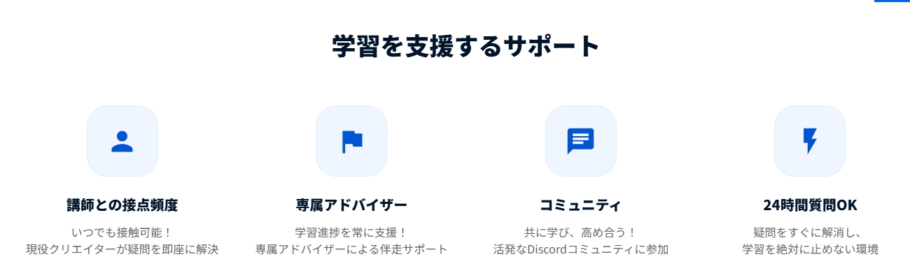 動画教材を渡して終わりではありません。第一線でAIを活用している現役の講師陣が、あなたの学習を個別でサポートします。社会人にとって一番の敵は「挫折」です。仕事で忙しい時期の学習調整や、分からないことがあった時の即座の回答など、最後まで走りきれる環境が整っています。