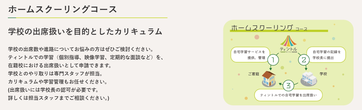 文部科学省の指針に基づき、ICTを活用した自宅学習を「出席」として認める制度があるのをご存知でしょうか。ティントルでは、この制度を利用するためのサポートを行っています。学校に行けなくても「出席」の記録がつくことは、お子様にとって大きな自信になり、将来の進路選択(内申点など)において非常に心強い支えとなります。