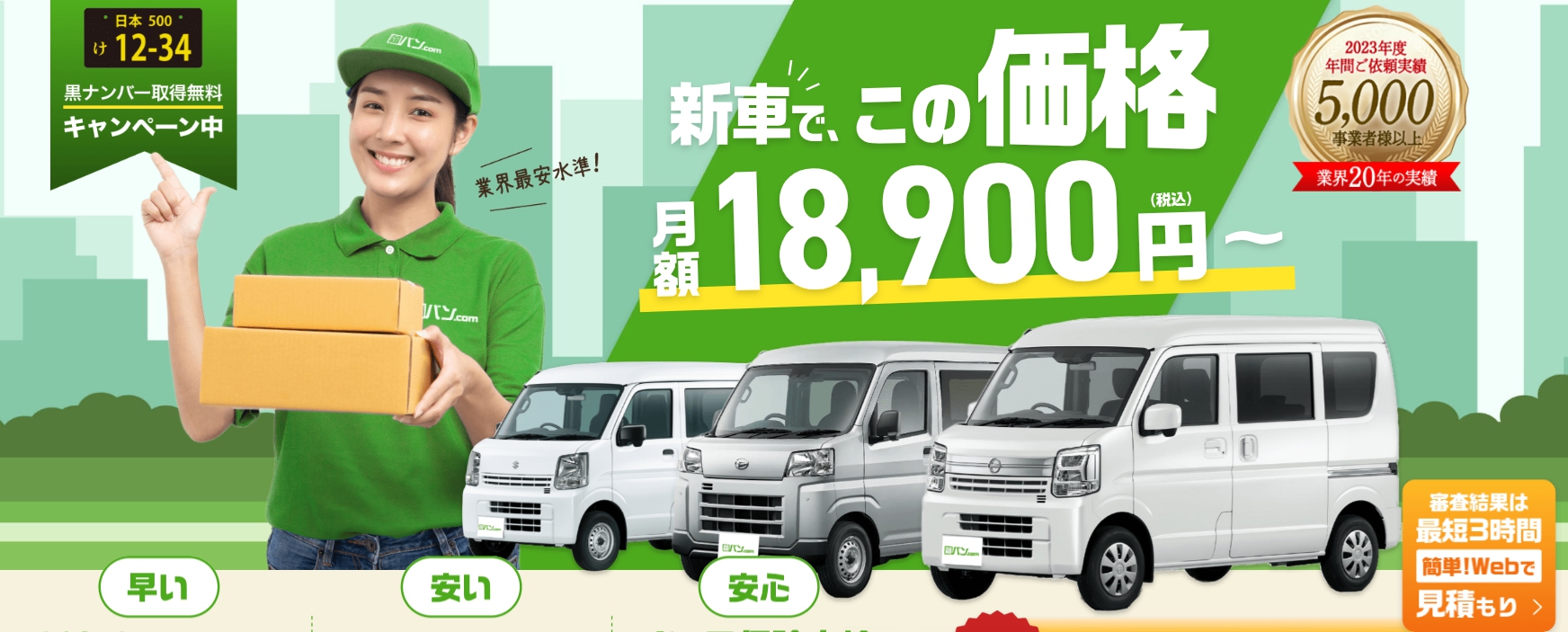 カーリースの最大のメリットは、支払いの透明性と安定性です。箱バン.comでは、事業の成長を妨げない賢いプランが用意されています。