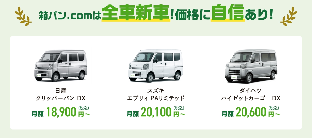 ビジネス用箱バン専門カーリースの【箱バン.com】。専門知識に裏打ちされた安心感と、経営を支える柔軟なプランで、あなたのビジネスを力強くバックアップします。